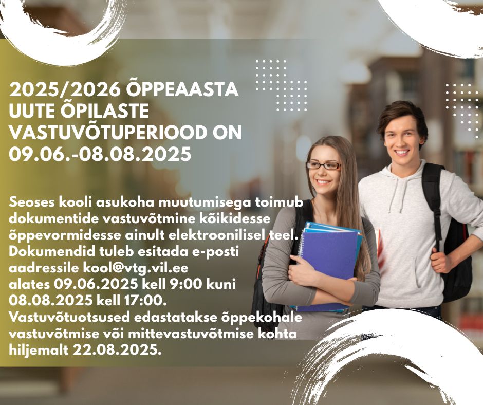 2025/2026 õppeaasta uute õpilaste vastuvõtuperiood on 09.06.-08.08.2025!